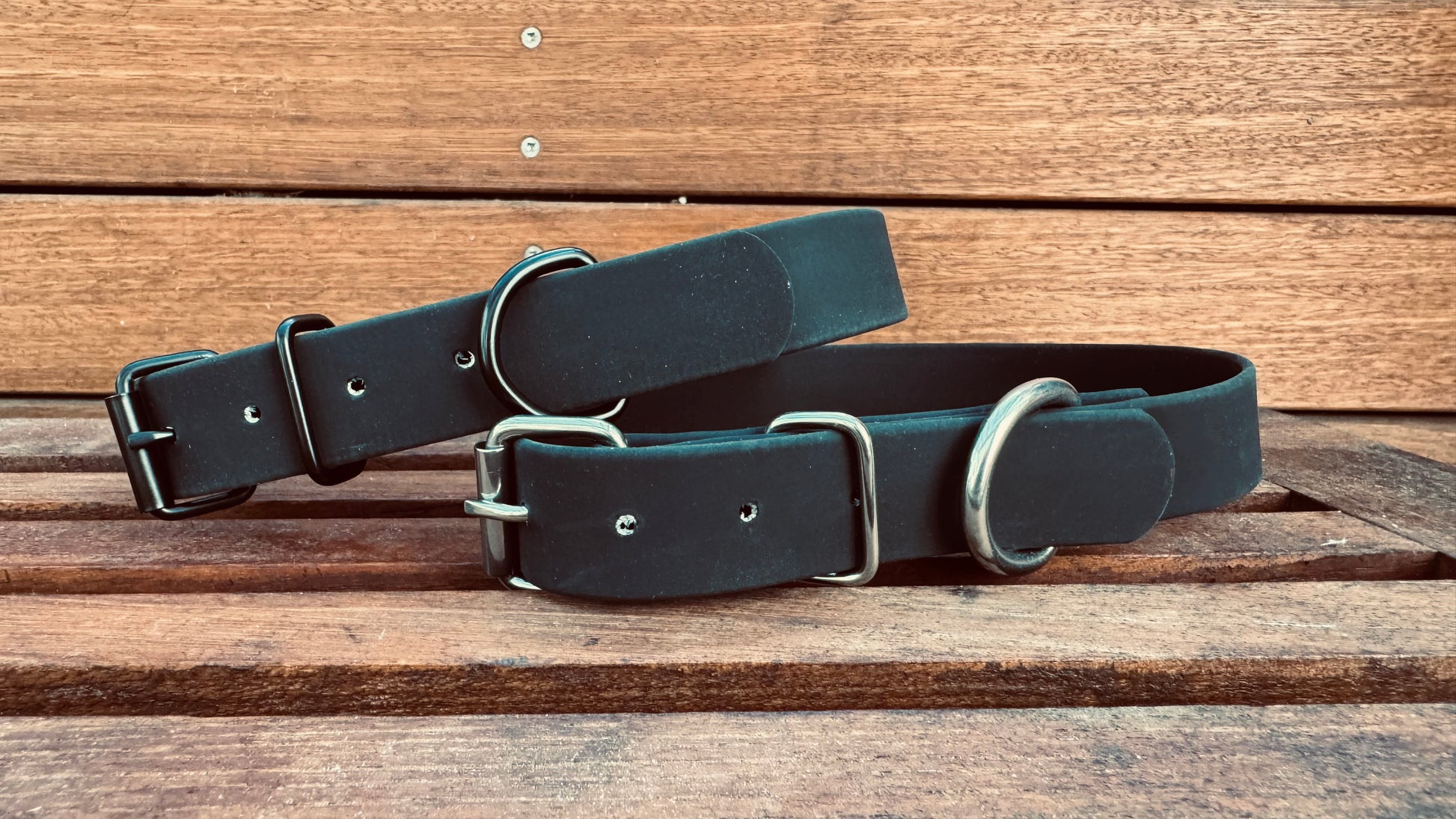 Our Hardy and tough collars are handmade right here in Victoria using quality stainless steel hardware, Our PVC webbing is 100% waterproof, tough and soft material giving complete comfort to your pet