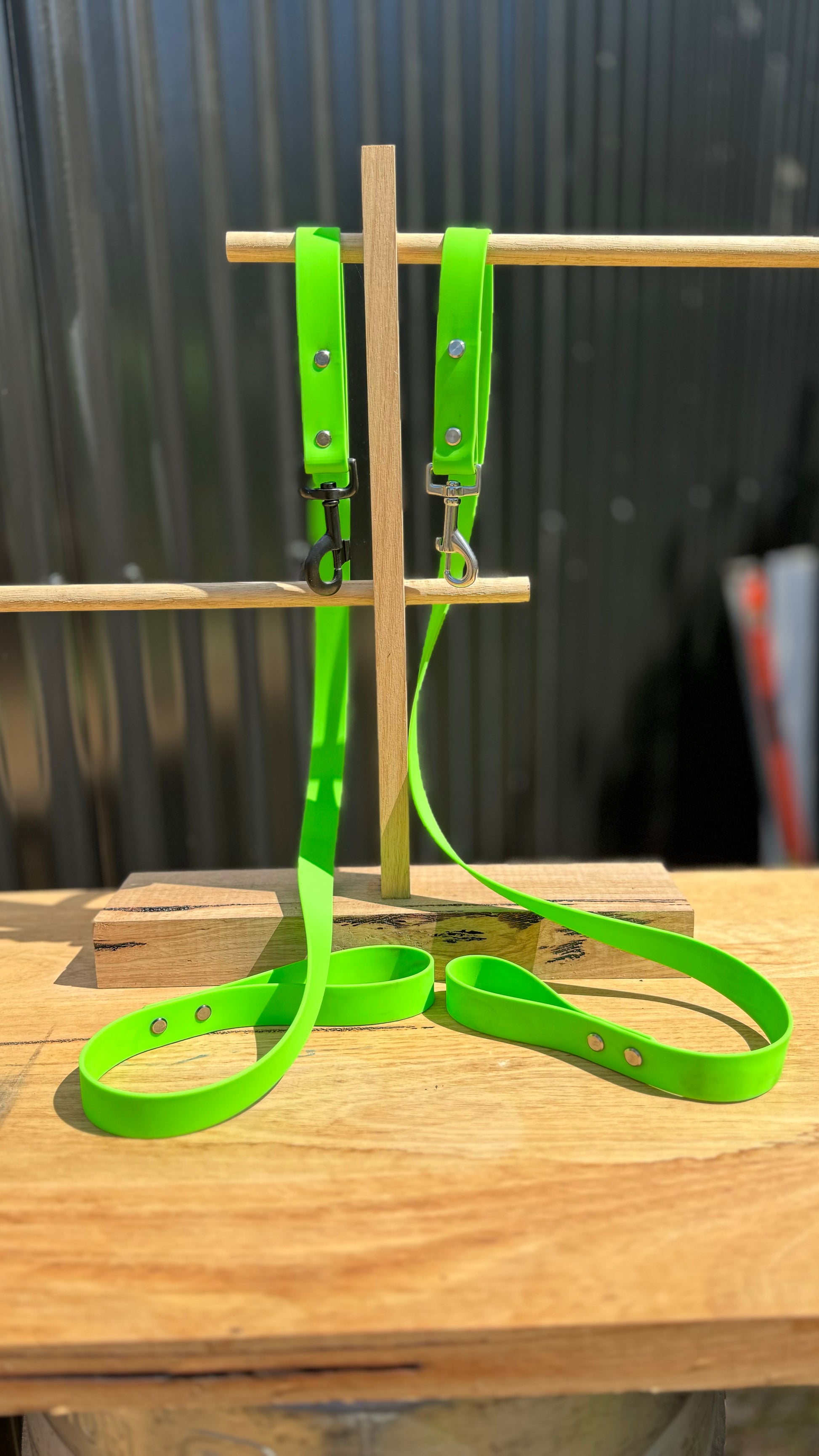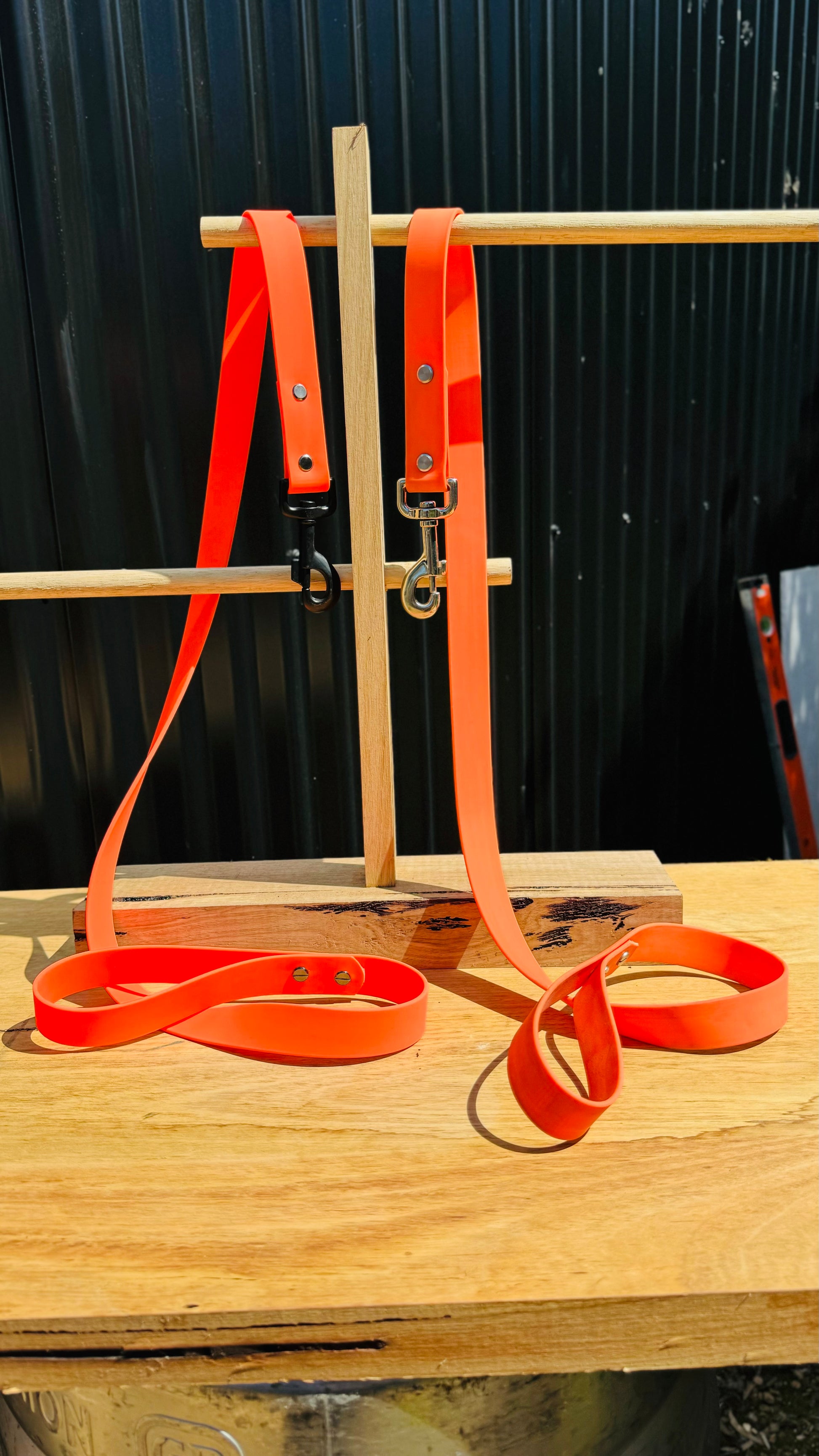 Our tough dog leads are handmade right here in Victoria using quality stainless steel hardware, Our PVC webbing is 100% waterproof, tough and soft material giving complete comfort to hold